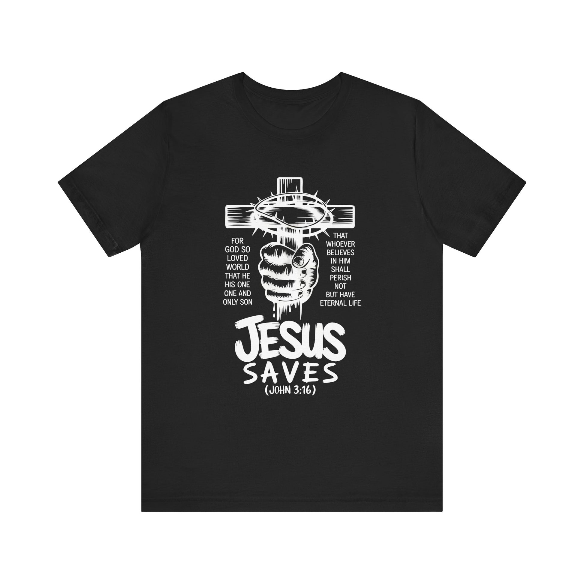 Share your faith boldly with this Jesus Saves (John 3:16) Christian T-Shirt.