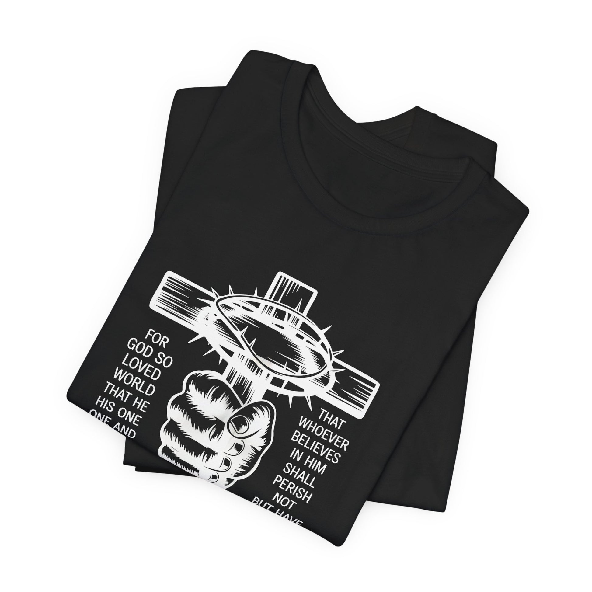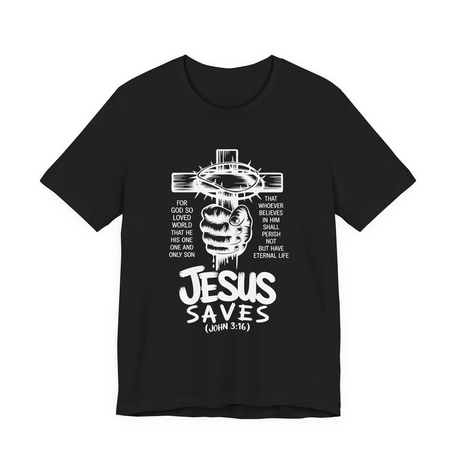 Jesus Saves – John 3:16 Christian T-Shirt (Bold Cross Design